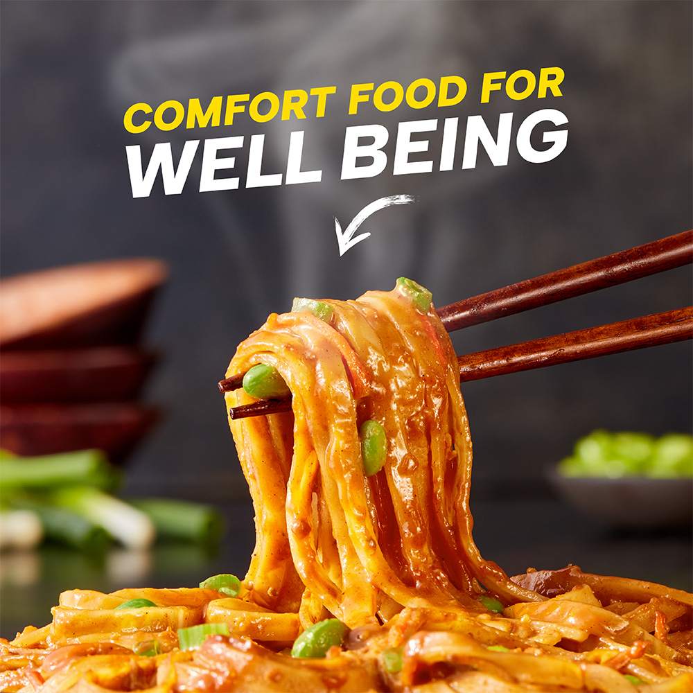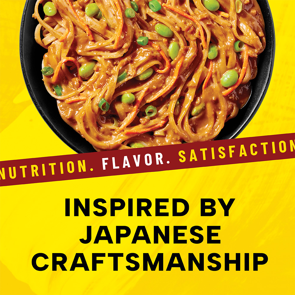 Tender dan dan noodles covered in a spicy and savory sesame sauce with edamame and scallion; powered up with protein, fiber and all 27 essential vitamins and minerals.